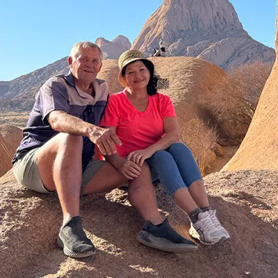 Эдди и Линда живут в настоящей пустыне Намиб. Эдди несколько раз в неделю ходит в горы на 0,7км. вверх. И его возраст 62 года! Люди удивительной энергетики.